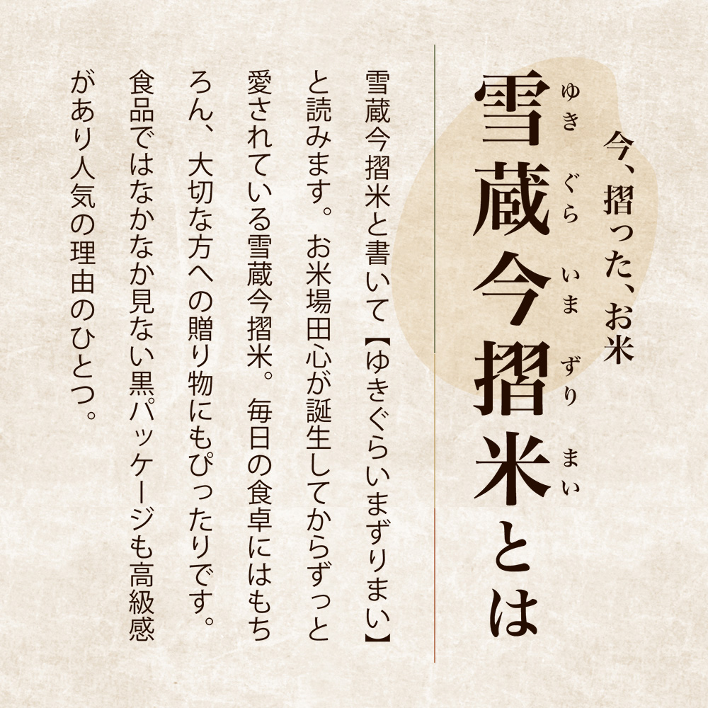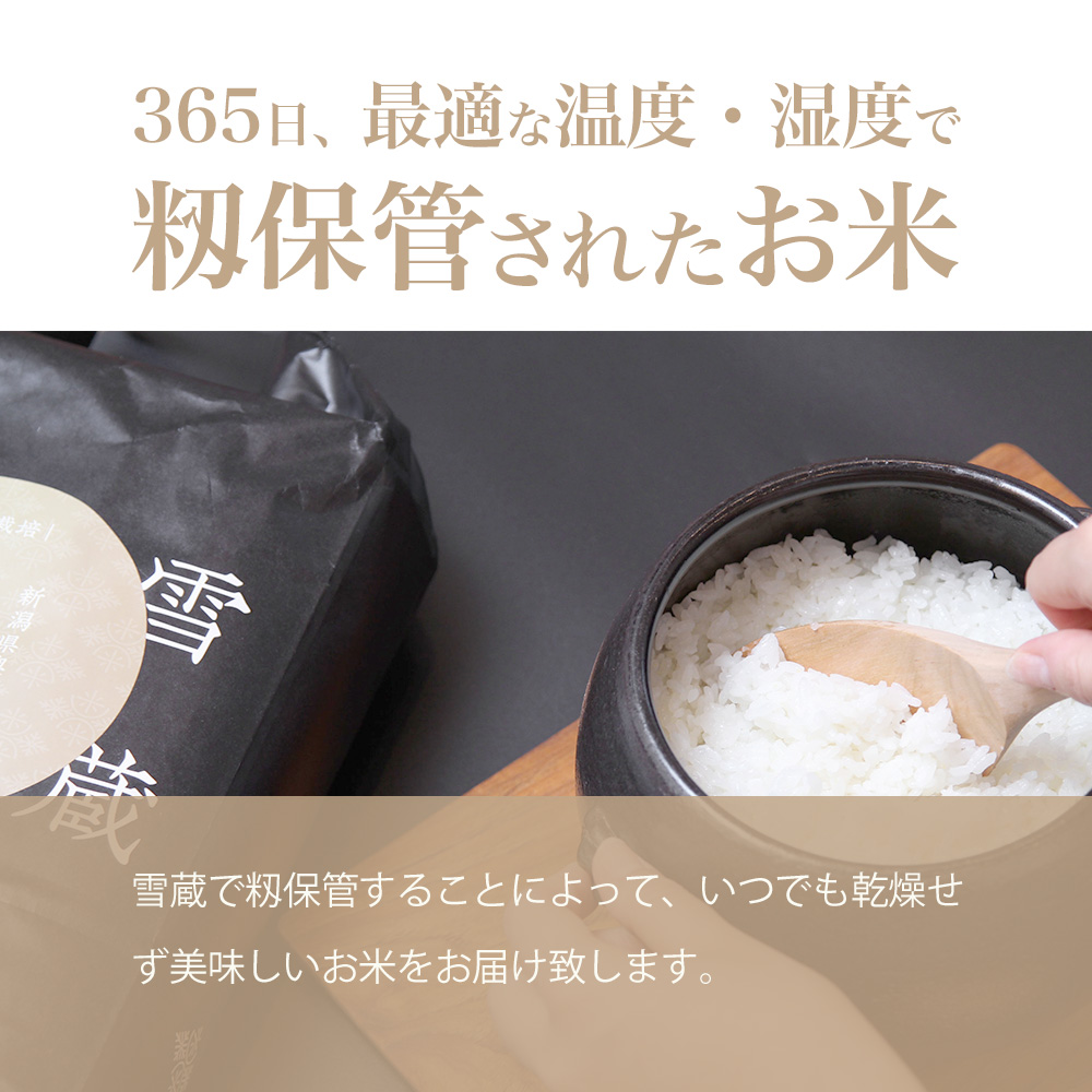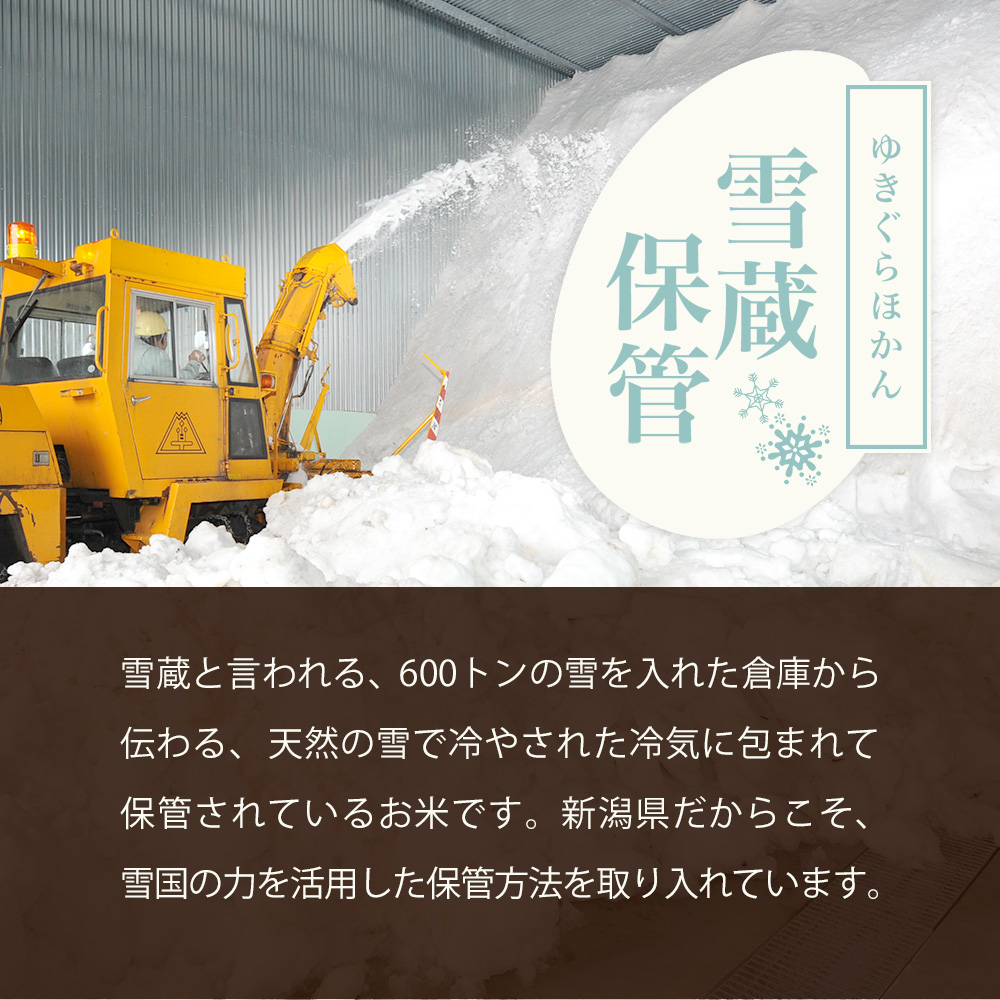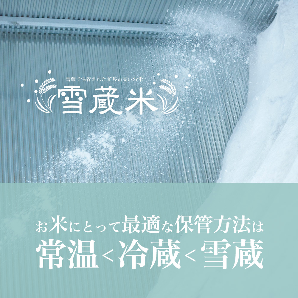 収穫後は雪蔵で低温保管し、出荷直前に精米。鮮度を保ったまま全国へお届けいたします。