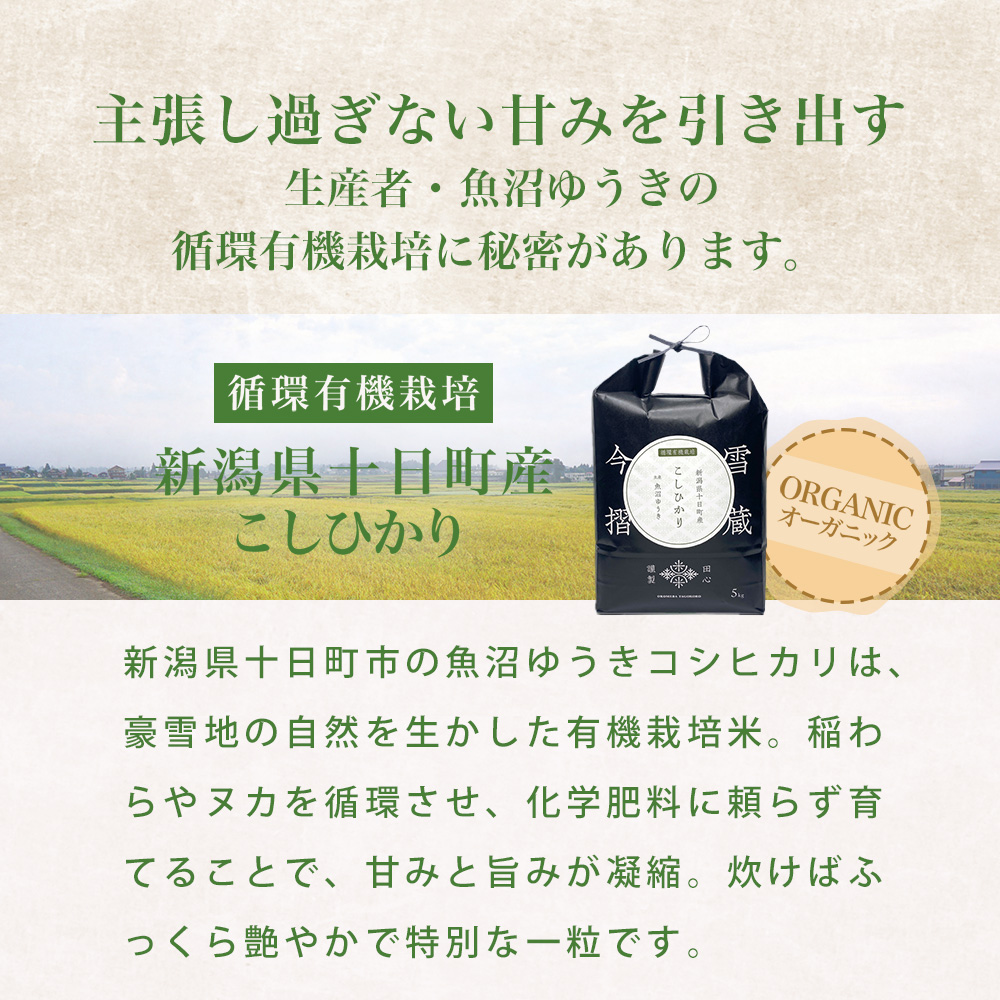 新潟県十日町産 雪蔵今摺米 コシヒカリ|JAS有機栽培・魚沼ゆうきの自然循環米・令和7年産
