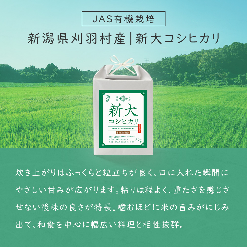 令和7年産 お米 新大コシヒカリ 5kg 新潟県 刈羽村 JAS有機栽培 お米 米 精米 白米 |令和7年産|越後ファーム|新潟県 刈羽村産|水品栄人さん|雪蔵米 雪蔵保管|熨斗・ラッピング無料