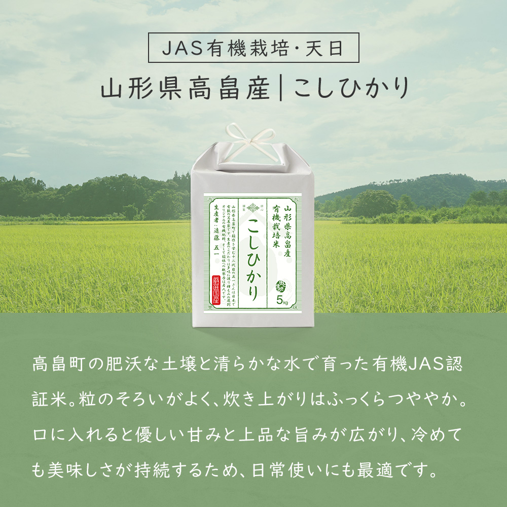 令和7年産 お米 こしひかり 5kg 山形県 高畠町 JAS有機栽培・天日 お米 米 精米 白米 |令和7年産|越後ファーム|山形県 高畠町産|遠藤五一さん|雪蔵米 雪蔵保管|熨斗・ラッピング無料