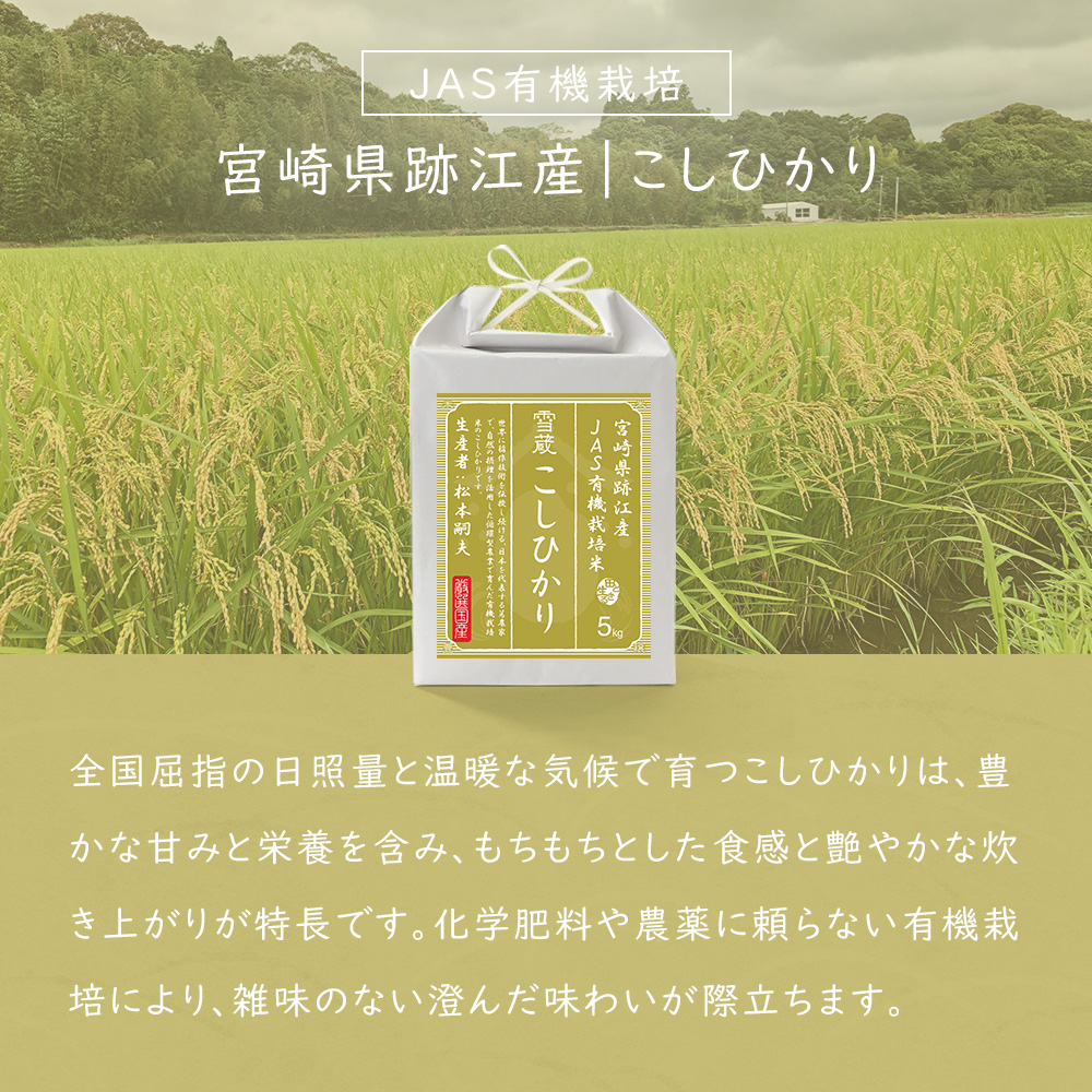 【新米 令和7年産】 コシヒカリ 5kg 宮崎県跡江産 JAS 有機栽培米 無農薬 [熨斗・ラッピング無料] [ご注文後に精米]