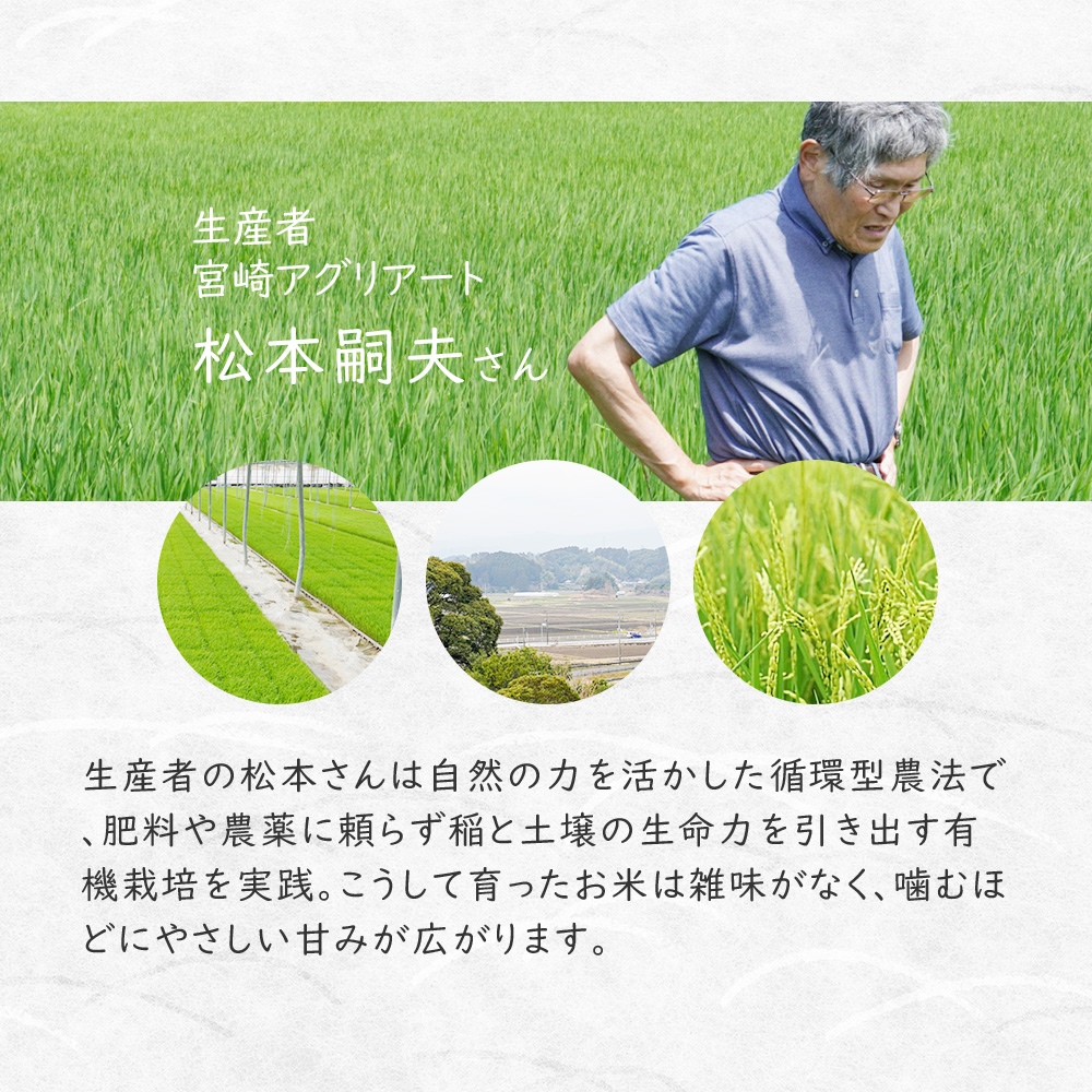 【新米 令和7年産】宮崎県跡江産のコシヒカリ。毎年発売してすぐに売り切れてしまう松本嗣夫さんが作ったお米は、生態系や自然夫摂理を活用し、稲の生命力を最大限に引き出します。宮崎の資源を有効活用した循環型農業で育んだお米は宮崎県の大地と太陽の味を感じる事の出来るおすすめのお米です。